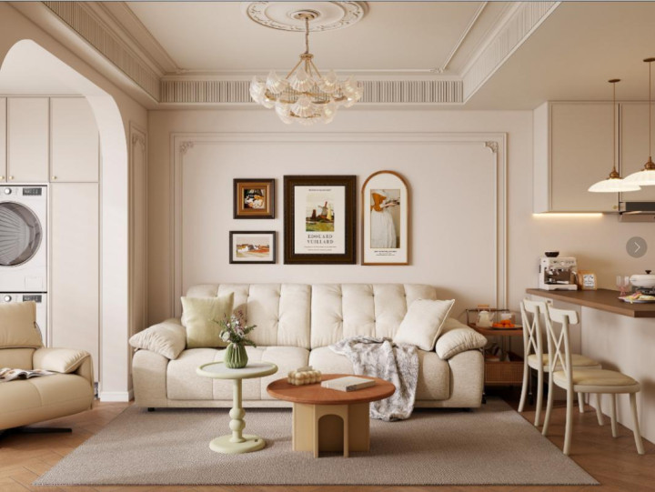 剩下的40%分给家电和家具软装,家电占15%,家具、窗帘、灯具、全屋定制这些占25%,软装后期能添慢慢选,预算紧张的时候不用全部选完。
